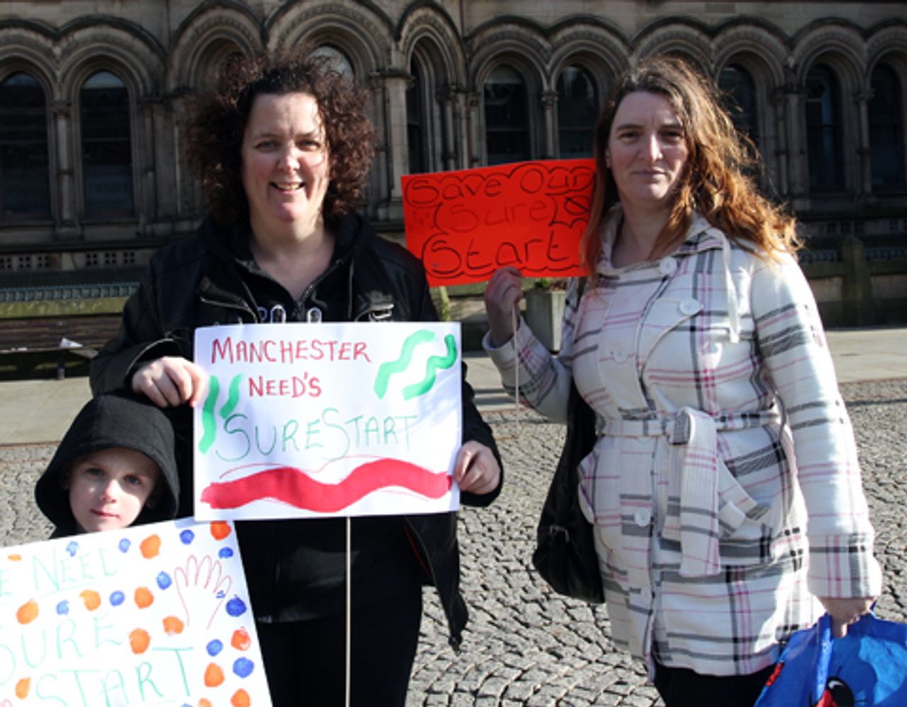 Hundreds of parents and their children demonstrated outside Manchester Town Hall in north west England on Saturday, to protest plans to close or privatise all the city’s 36 Sure Start children’s centres.