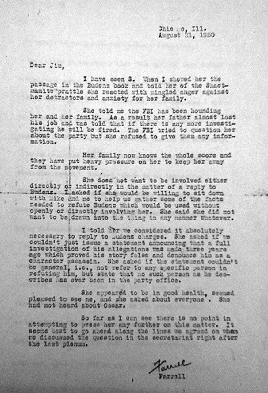 Alongside the evidence of Callen’s role, Shachtman and Glotzer also informed Cannon that their source stated there was an FBI agent in the party leadership.