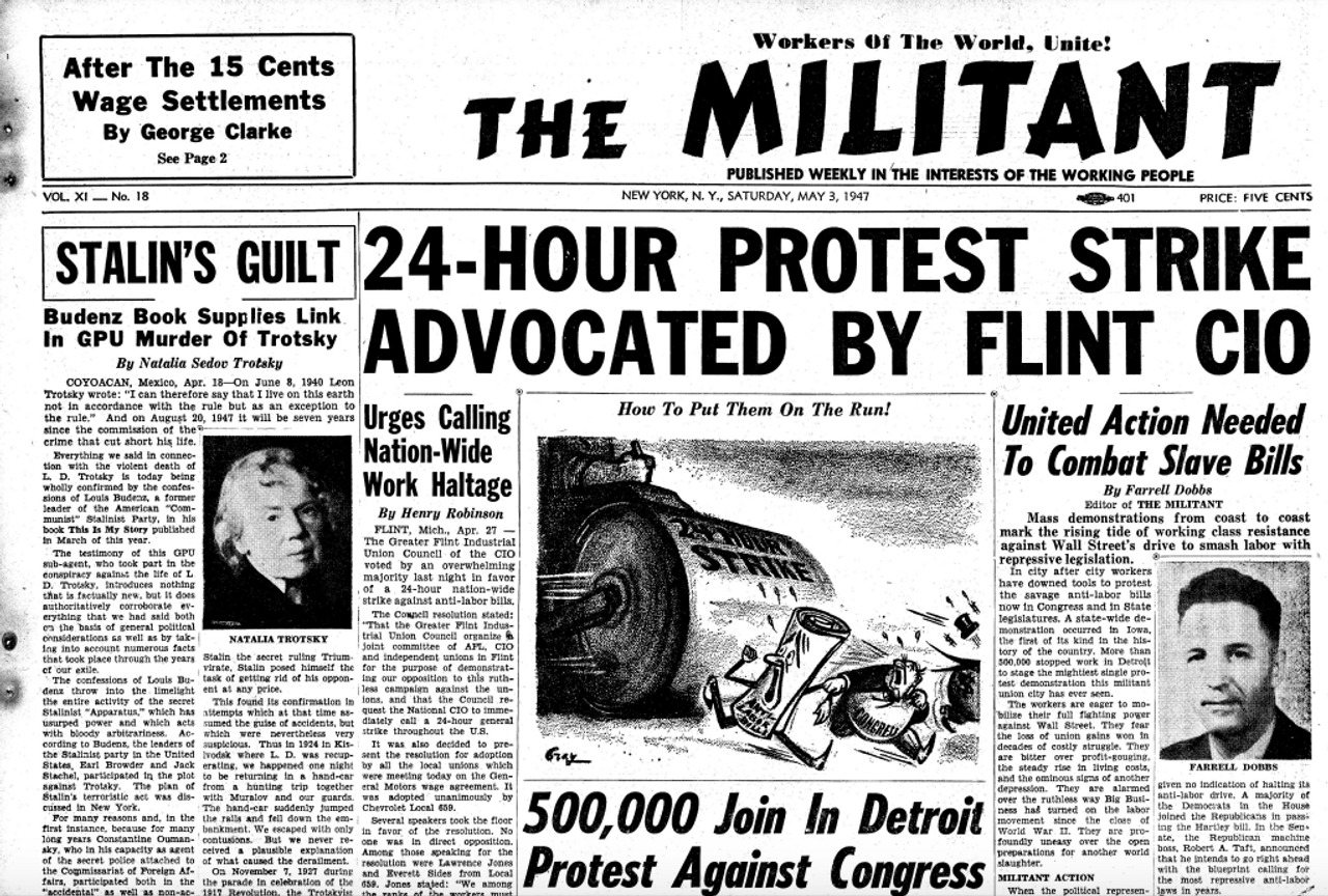 On Saturday, March 8, 1947, the Socialist Workers Party (SWP) ran a banner headline in its publication, the Militant, which read: