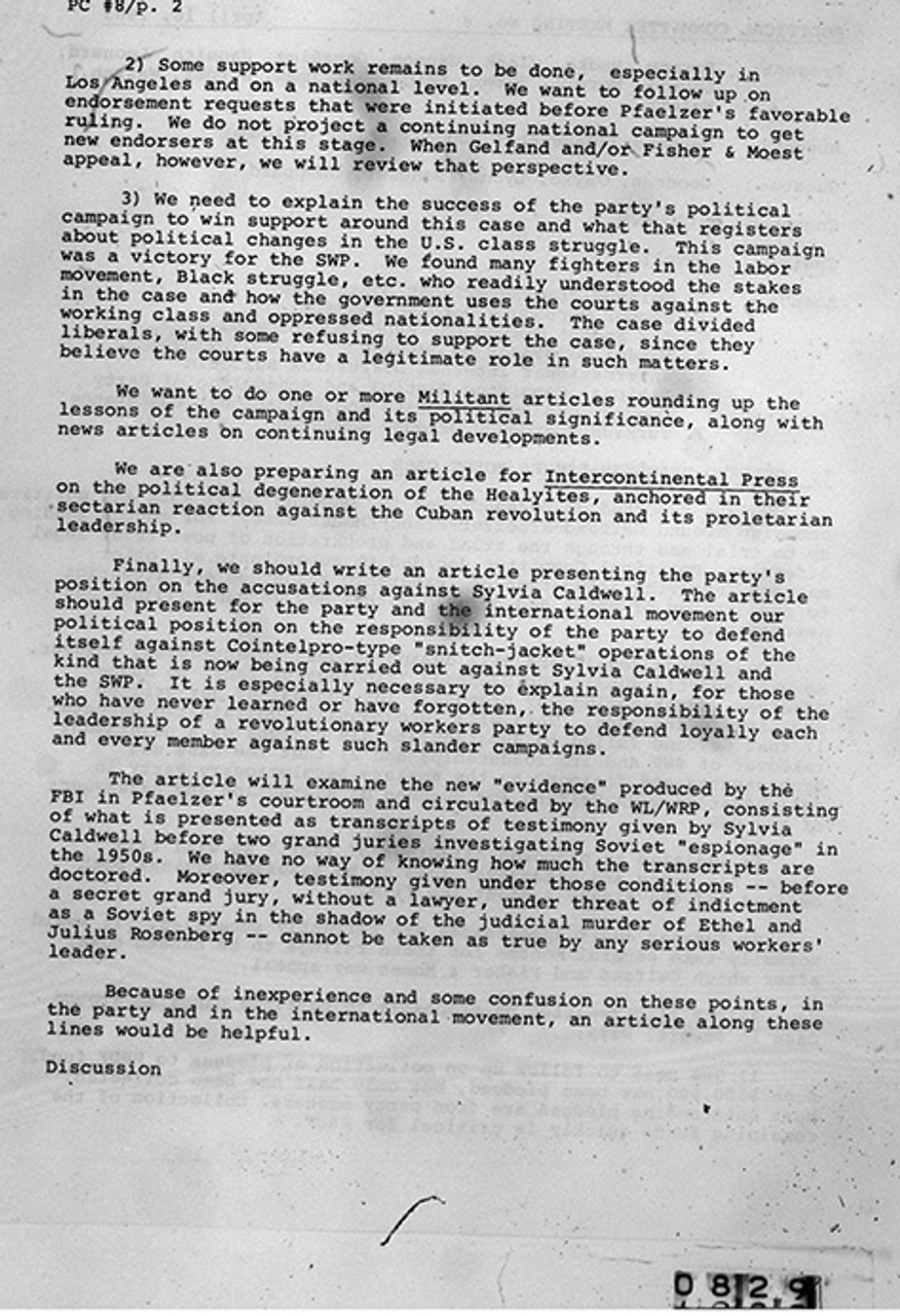 Instead, the control commission let the matter pass and swore those present to secrecy. Callen was allowed to leave the movement without any public statement from the party explaining her sudden departure. The SWP dropped all coverage of Louis Budenz’s revelations at precisely the time the government was acting on the SWP’s prior demand that Budenz be interviewed by a grand jury. When Budenz published his second book in 1950, Men Without Faces, the SWP worked with Callen herself, who dictated to Farrell Dobbs how the SWP should respond to Budenz’s allegations.