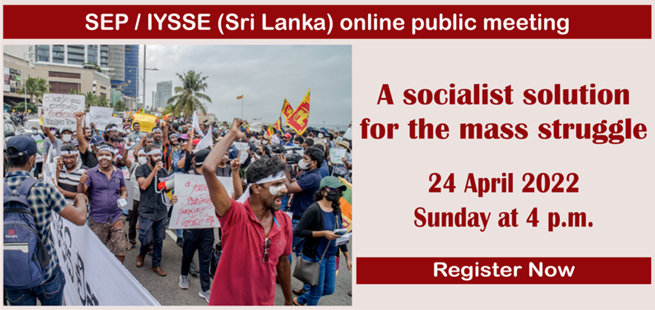 The Socialist Equality Party (SEP) and International Youth and Students for Social Equality (IYSSE) in Sri Lanka are holding a picket and an online public meeting to advocate a working-class socialist program for the ongoing mass demonstrations against the government of President Gotabhaya Rajapakse.