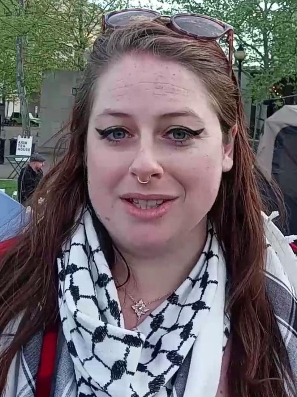 The most important reason we’re out here is to protest against the genocide that is taking place in Gaza. But it’s also because [the administration] called in the riot police on a totally peaceful protest and arrested over 120 students and faculty members.