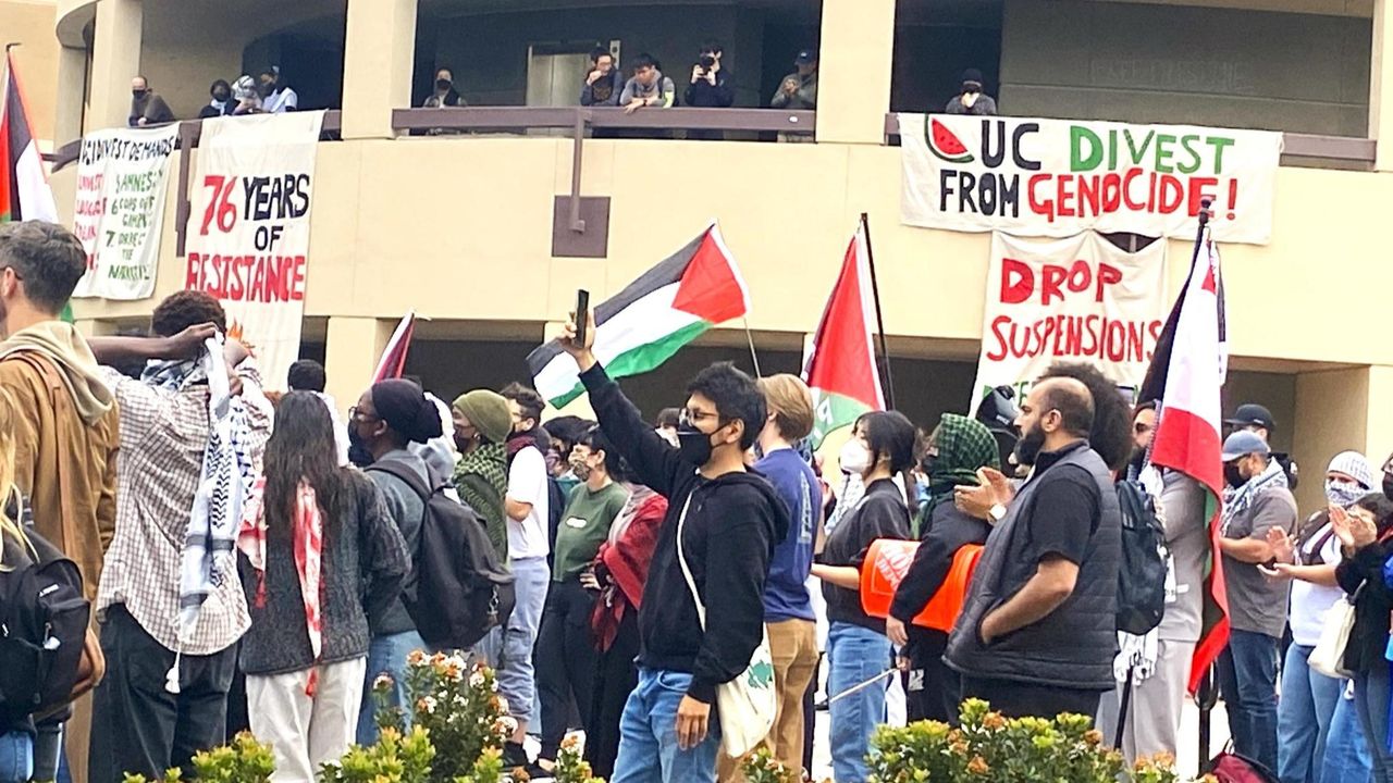 Adding insult to injury, the press release ends: “The University has allowed—and will continue to allow—lawful protesting activities surrounding the conflict in the Middle East.” In fact, students have been beaten and arrested across California and the United States. Only last week, police smashed up an encampment at UC Irvine while the academic workers’ strike voting process was ending.