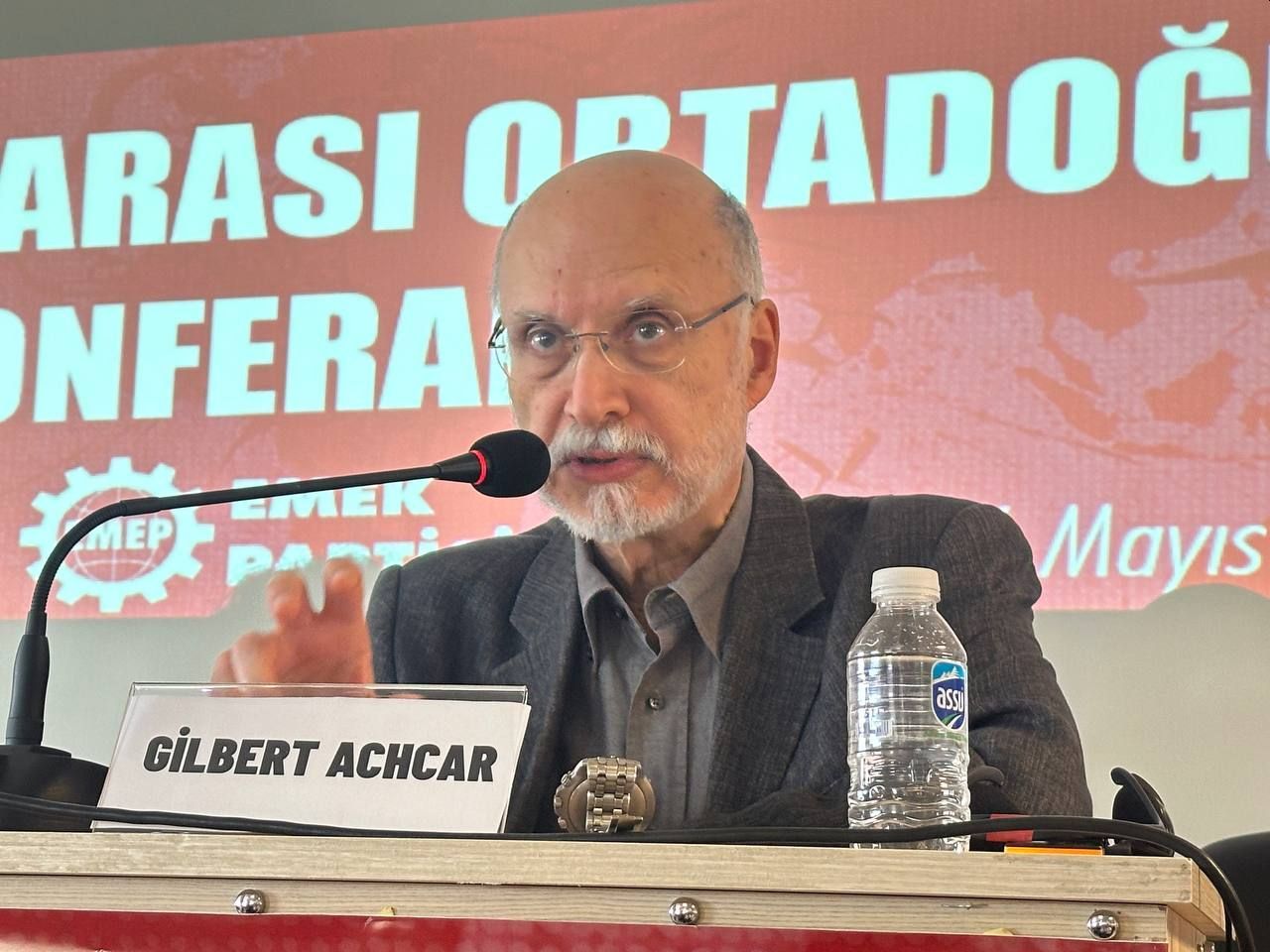 The conference began with an opening speech by Seyit Aslan, head of EMEP. Aslan argued that the genocide in Gaza was part of an “international struggle for hegemony”. Presenting Russia and China as two new “imperialist powers”, Aslan reiterated the pseudo-left thesis that relativizes the aggression of US/NATO imperialism.