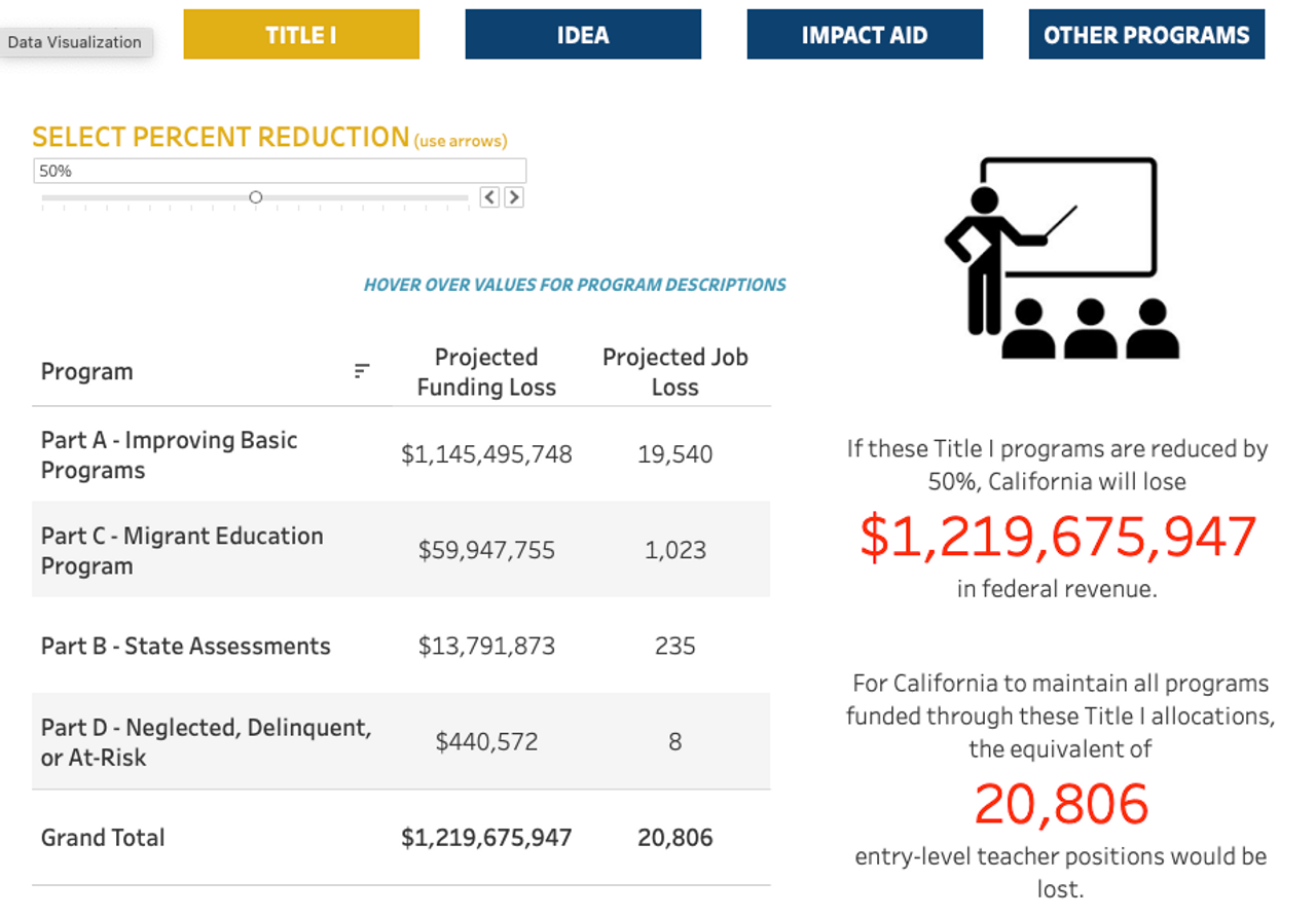 - Cuts to elementary and secondary education. This includes English language learning and education research. It also includes cancellation of over $900 million in research contracts, including projects like the Nation’s Report Card and other education research initiatives.