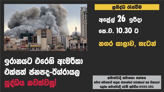 සසප/සසජාතශි ප්රසිද්ධ රැස්වීම: ඉරානයට එරෙහි ඇමරිකා-ඊශ්රායල් යුද්ධය නතර කරනු!