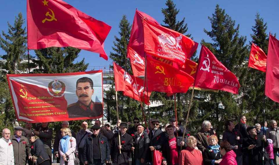 ரஷ்ய ஐக்கிய கம்யூனிஸ்ட் கட்சியானது (OKP) ஜெனடி சுங்கானோவ் (Gennady Zyuganov) தலைமையிலான ரஷ்ய கூட்டமைப்புக் கம்யூனிஸ்ட் கட்சி (CPRF) இலிருந்து பிளவுற்று 2014ல் உருவாகியது. புட்டின் ஆட்சியின் அரசியல் கூட்டாளியான சுங்கானோவ் இன் தேசிய பேரினவாத அமைப்புடன் OKP இன் வேறுபாடுகள் ஒரு தந்திரோபாய வகைப்பட்டதாகும். சுங்கானோவ் இன் கட்சியை போலவே OKP யும் ஸ்ராலினைப் புகழ்வதுடன் அவரது குற்றங்களையும் நியாயப்படுத்தியது. OKP வலைத் தளத்தில் அண்மையில் பதிவிடப்பட்ட கட்டுரை ஒன்று பின்வருமாறு அறிவிக்கின்றது: