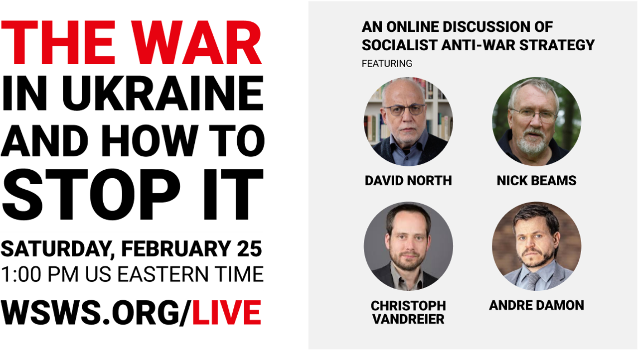 Dünya Sosyalist Web Sitesi (WSWS) ve Toplumsal Eşitlik İçin Uluslararası Gençlik ve Öğrenciler (IYSSE), Ukrayna’da savaşın patlak vermesinin birinci yıldönümü dolayısıyla, mevcut durumu açıklamak ve savaşı sona erdirmek için sosyalist ve enternasyonalist bir strateji geliştirmek üzere bir tartışma programı düzenliyor.